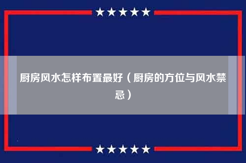 厨房风水怎样布置最好?厨房的风水要达到阴阳平衡、水火平衡,这样才能有利于家宅兴旺。