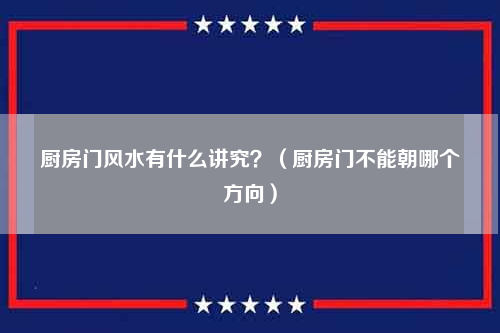 厨房门风水有什么讲究?厨房门的朝向也是很有讲究的,《阳宅三要》中就说:“开门见灶,钱财多耗。”意思就是说,如果人一开门就看到厨灶,会经常出现损失钱财的事情。